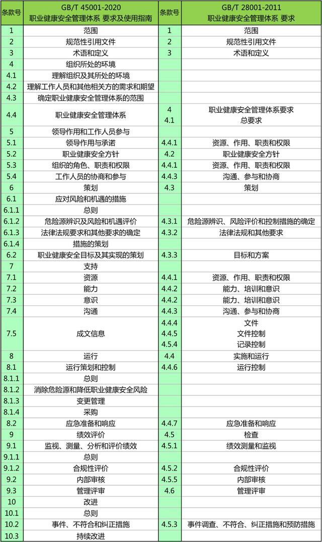 ▲ GB/T 45001-2020與GB/T 28001-2011的對應(yīng)關(guān)系